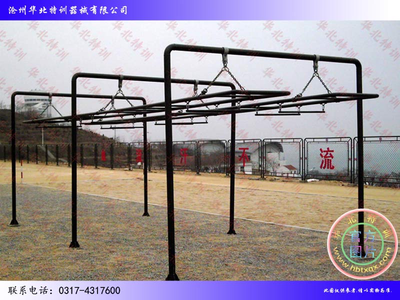 | 使用说明 | 训练人员双手抓住上方的横梯,使身体悬挂在空中,依靠臂力带动身体前行至另一端 | ||