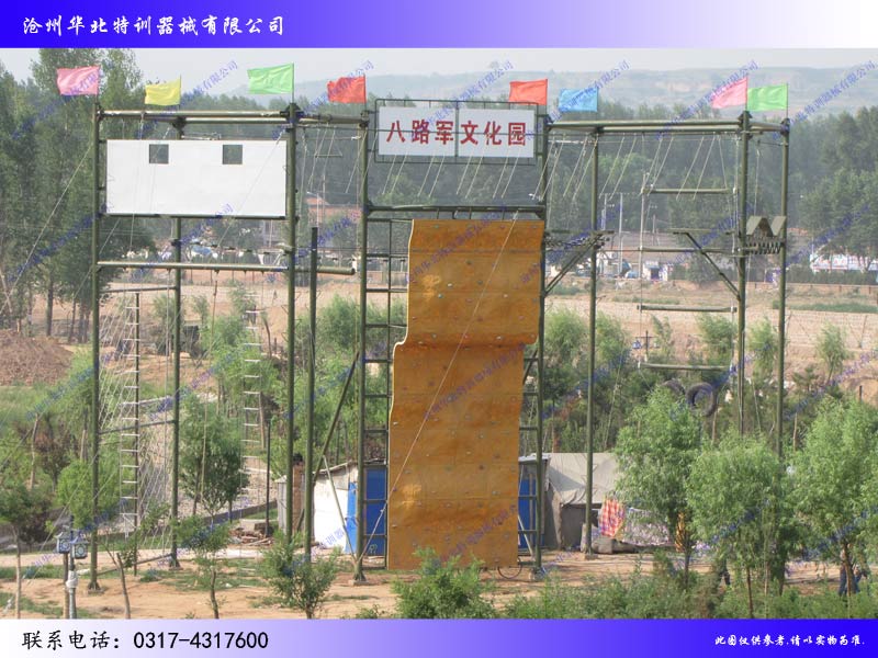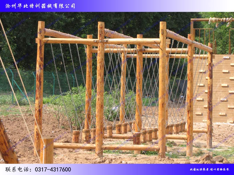 地面拓展器材:软梯、独木桥、爬网、吊桩、阻隔墙等。