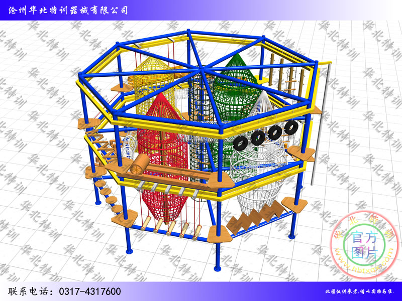 | 其它 | 此儿童拓展器械可以根据客户要求大小重新在设计项目数量和层数。其它事宜请拨打我公司联系电话:0317-4317600。 | ||